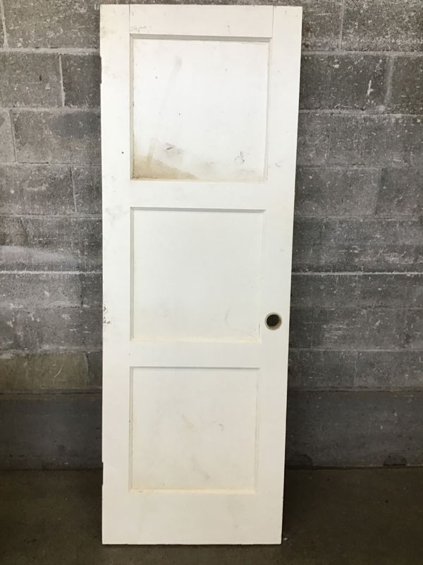 Vintage three panel door ready for more action. Has wear and tear consistent with age.