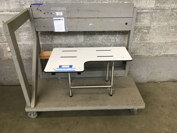 Brand new, never installed, Lift-Assist, right handed ADA compliant flip down shower seat, includes fasteners. Bulk item, no holds, first come first served. See them retailing new on Wayfair here