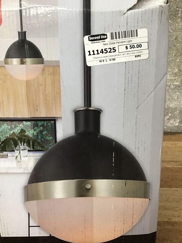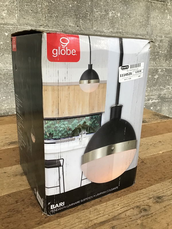 Midcentury styled Globe pendant light. Still in box. Contents were checked, complete and shade undamaged.