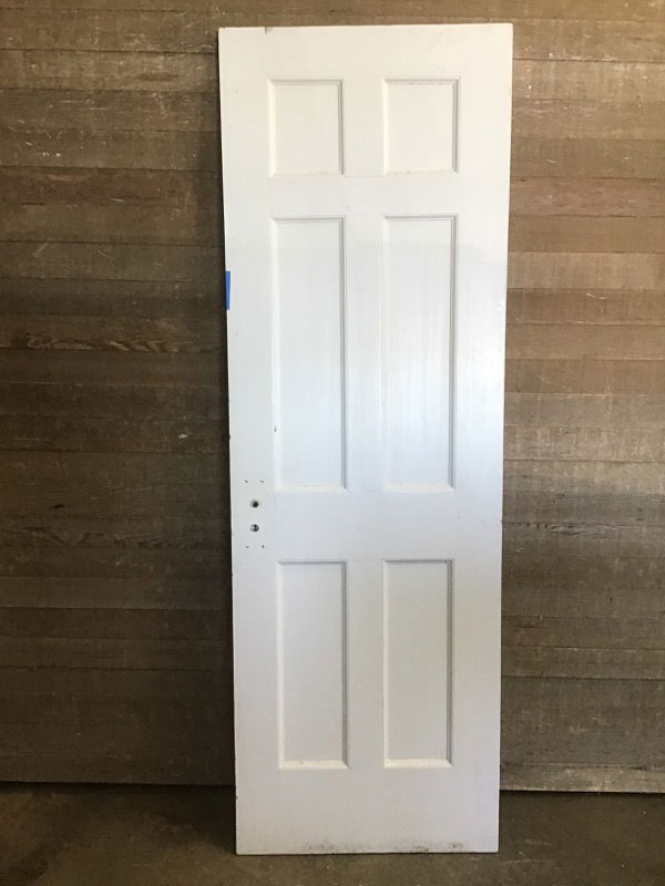 RH swing vintage interior door six panel overheight. Structurally in good shape, though it could use a fresh coat of paint/cleaning.