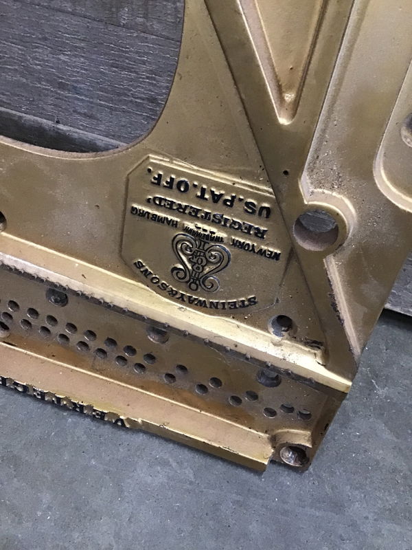 Cast iron vertegrand piano harp, no strings, from a Steinway & Sons piano. This is incredibly heavy but would make a stunning piece of art.