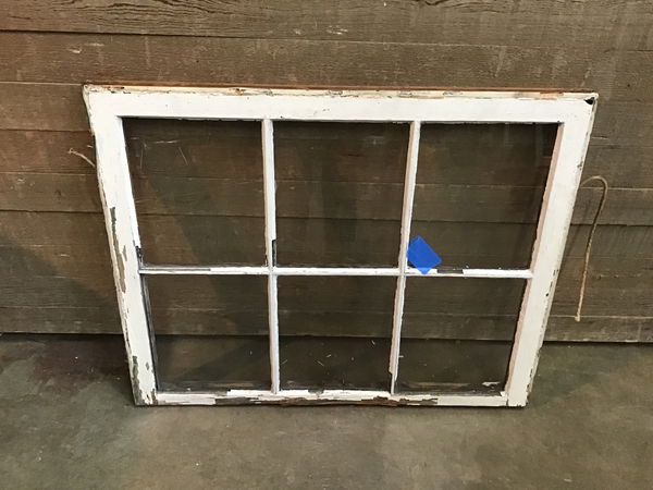 Charming vintage six-pane fir window sash with one cracked pane, price reflects