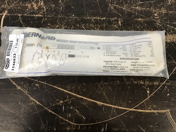 Electrode Holder, 400 Amps AC, Large Ball Point Screw Connection With Over 2, 000 Pounds Of Gripping Pressure Allows The Electrode To Be Bent To A Desired Shape For Access To Difficult Welds Cable Connection, This item has NOT been tested in house. We recommend a full test prior to installation.