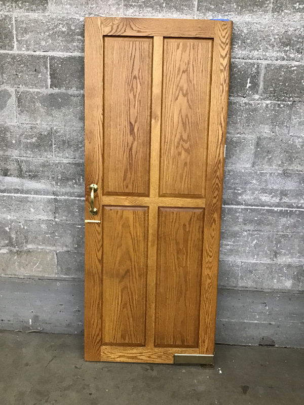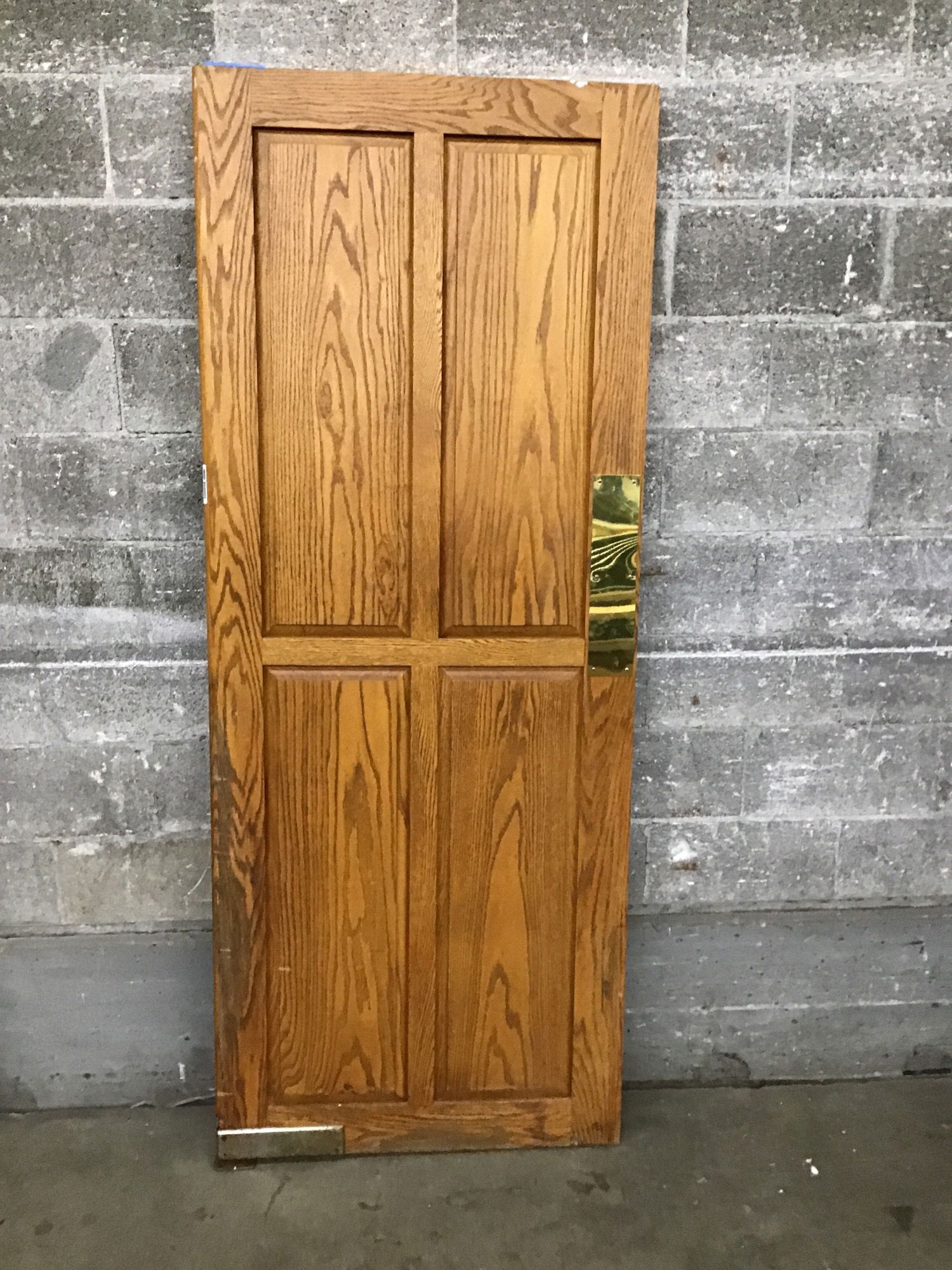 WOW this is an amazing butler door, with brass push plate on one side, and brass handle on the other. It does come with the swing hardware, so just plug and play.