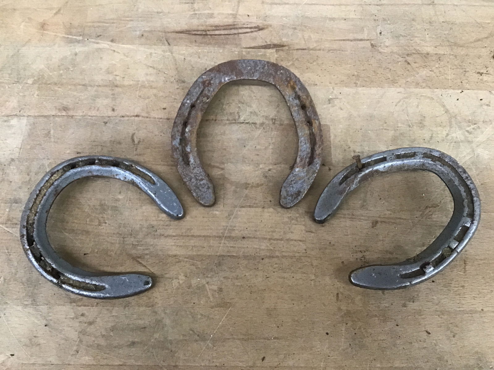 Authentic horseshoes from real horses. Weld them together, play games with them, hang them on your wall, put them on your horse.. the repurposing possibilities are endless! Some still have copper tacks in them. This is a bulk item; no holds please.