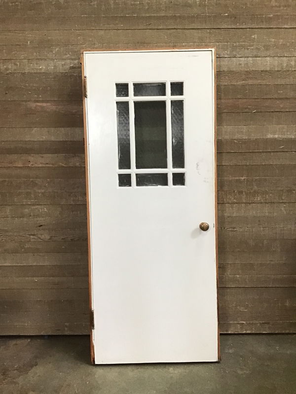 Vintage 32" fir interior door with an exterior/ commercial thickness, in jamb, with a true divided half lite that has wired safety glass and original door hardware. The safety glass has an obscured perimeter and and clear center. This door may have cosmetic imperfections or scuffs as well as having a "Women" sign adhered to it, but otherwise looks to be in good condition. This door was salvaged from Western State Hospital and removed with reverence and care by our very own Salvage Team. For more info regarding this job, please see this link: https://www.seconduse.com/2024/02/new-massive-wa-state-salvage-project/