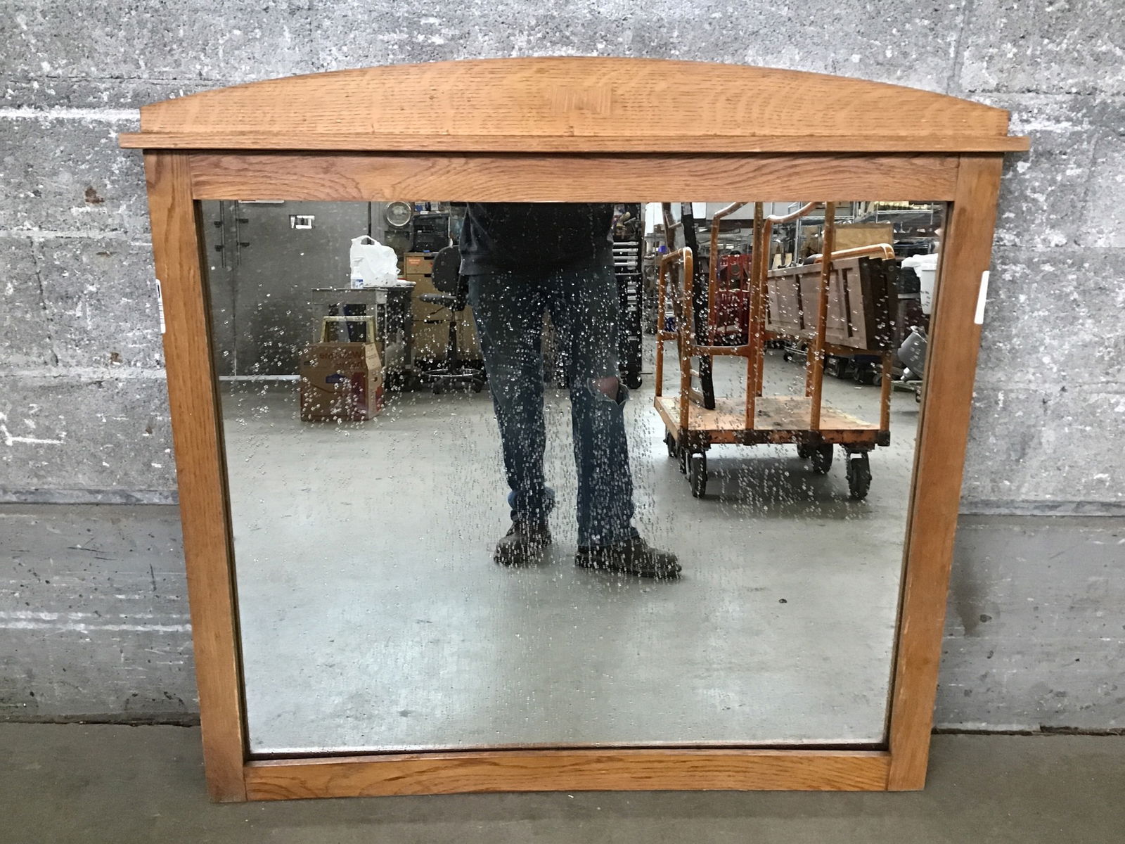 Simply designed and styled large Oak framed mirror probably originally from a piece of furniture.