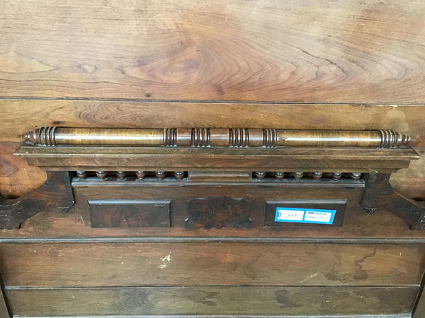 This beautiful Eastlake bed frame, headboard, footboard and only 1 rail, would be a bit of a project, but for the right person, boy would it be worth it. It features classic Eastlake style carved details, a big burl accents and oodles of rustic charm. It is missing some big components, ie: a decorative piece that once crowned it and some other bits and pieces. It's also got the usual cosmetic damage in the way of some nicks and scratches. Give it a new life, you won't regret it!