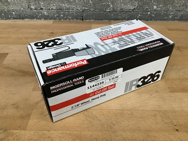 From Ingersoll-Rand, this IR326 air cut-off tool offers 18000 RPM and turns your air compressor into a die grinder power source. Fit for 2 7/8" Wheel, Heavy-Duty. Appears to have never been used. Retails at $60+. Photo may be representative.