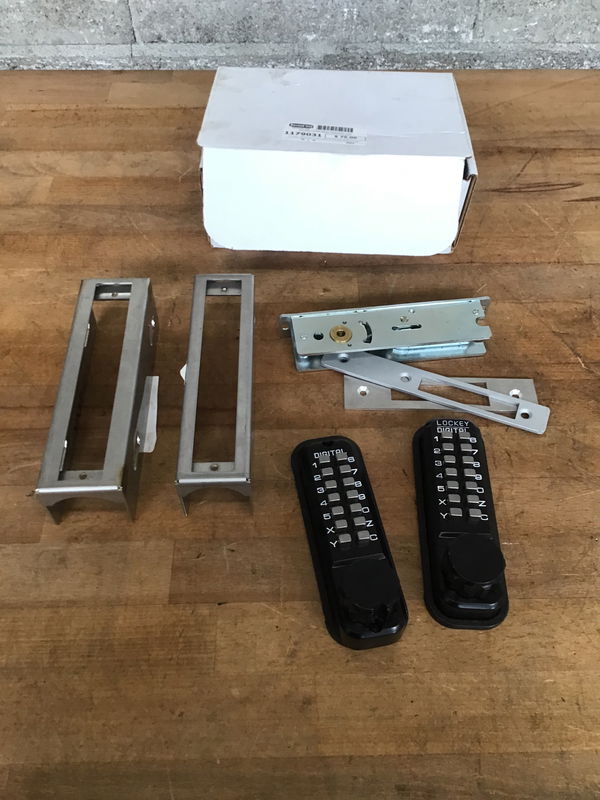 A Lockey 2900Double Combination narrow stile deadbolt lock in its original packaging, seemingly never installed. Good for storefront doors and gates. Retails new for $300.