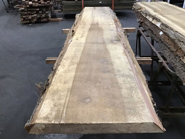 Locally milled and vacuum kiln dried. Cottonwood is not a wood you find slabbed very often due to the difficulty of drying it. In fact it is such a high moisture wood that you can't even burn it with out air drying for years; when cut down most Cottonwood is just chipped. Our supplier uses a specially made vacuum kiln to get it dry. Nonetheless, this slab has cupped a bit (1/4" dip); there's also a check on one end, running about 10" down the length. Face width, the side you see in the photos, varies between about 17" and 22", bark not included.