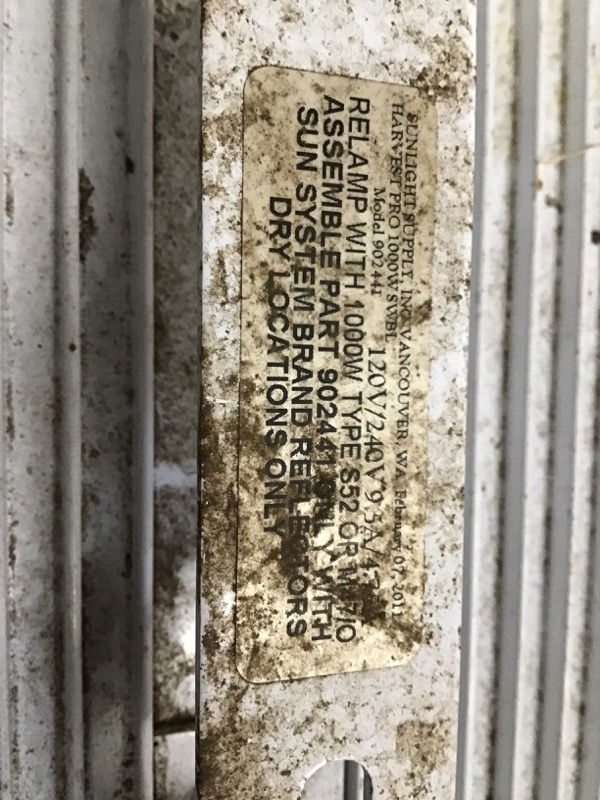 Sunlight Supply Relamp 1000W Grow Light Ballast. Used with quite a bit of dirt. Sold untested.