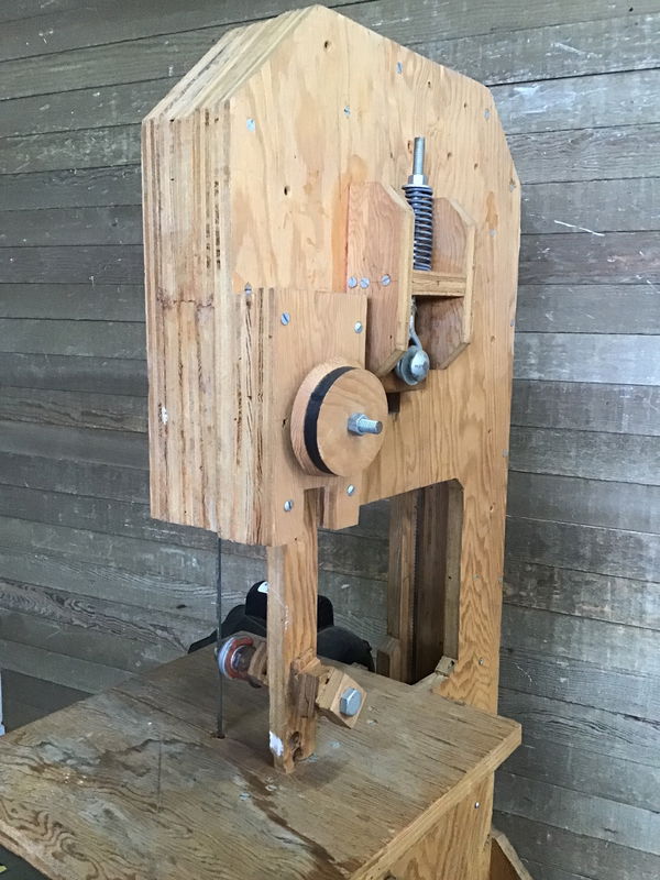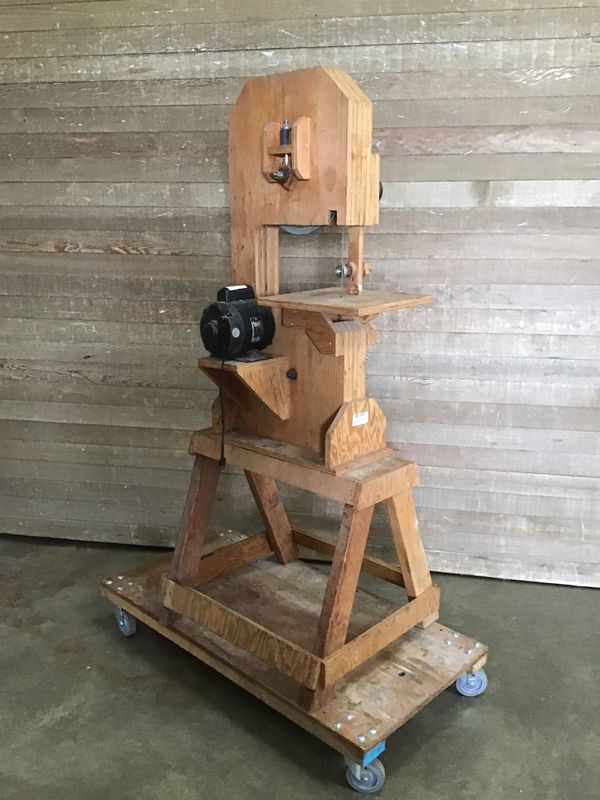 Check out this homemade band saw! Made entirely of plywood and various hardware parts. There is some damage to the cord of the motor, but we were still able to test it and it powered on nicely. The motor is made by Marathon Electric MFG Corp. and is model 88M80. Would be a perfect addition to a small little shop.