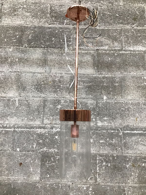 A part of Park Harbor's Hanzell line, this pendant sports a beautiful bronze copper finish and a bubbly glass cylinder shade.