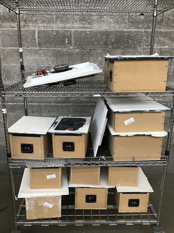 Stealth Acoustics Invisible Speakers. Made to be in-wall installed when your drywall is done to be invisible. These are different sizes, all the same price. Photo may be representational. This is a bulk item. No holds please.