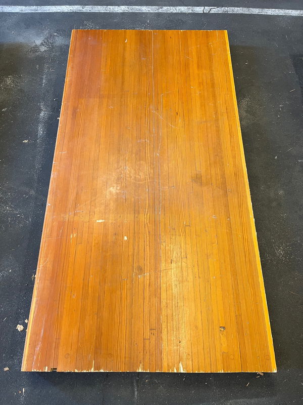 6.5 foot Pine bowling lane. Salvaged from the 1960's built four lane bowling alley at Western State Hospital. Removed with reverence and care by our very own Salvage Team. Link here for information on this project