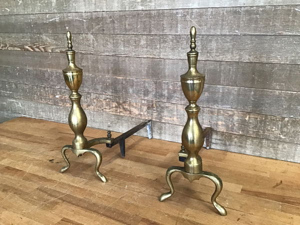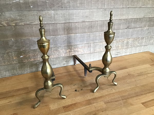 This pair of Vintage Royal Brass Andirons are in great shape and ready to warm up your fireplace!