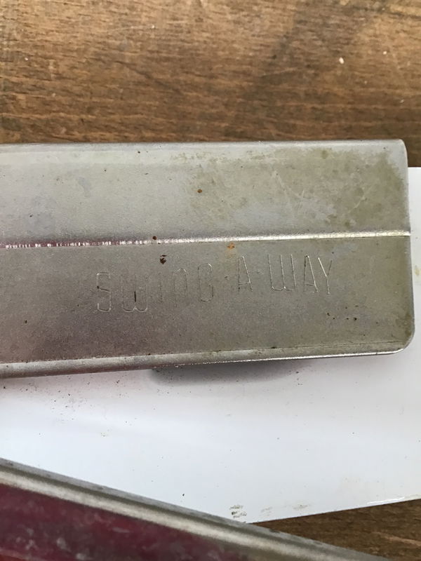 Wall mount can opener that swings away when not needed. How neat! The roller blade is a little gunky, but it's still sharp.