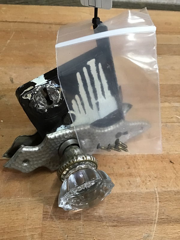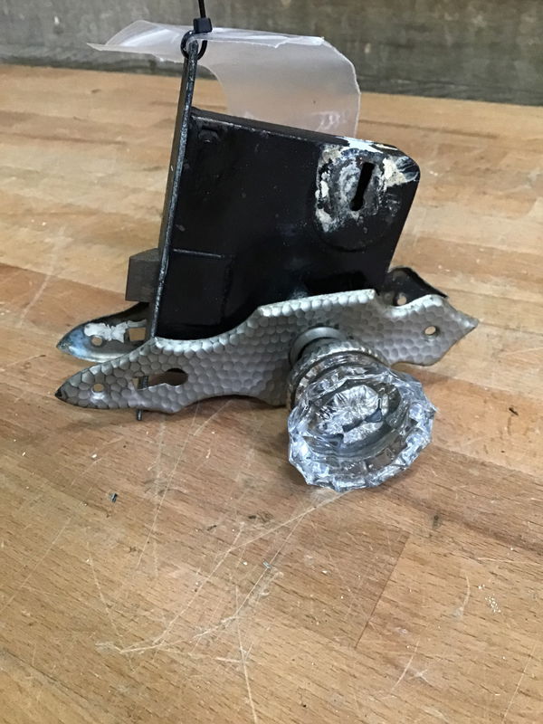 Vintage Glass Knobset and Mortise Box with Hammered Metal Accents