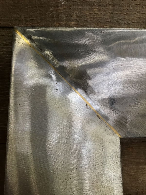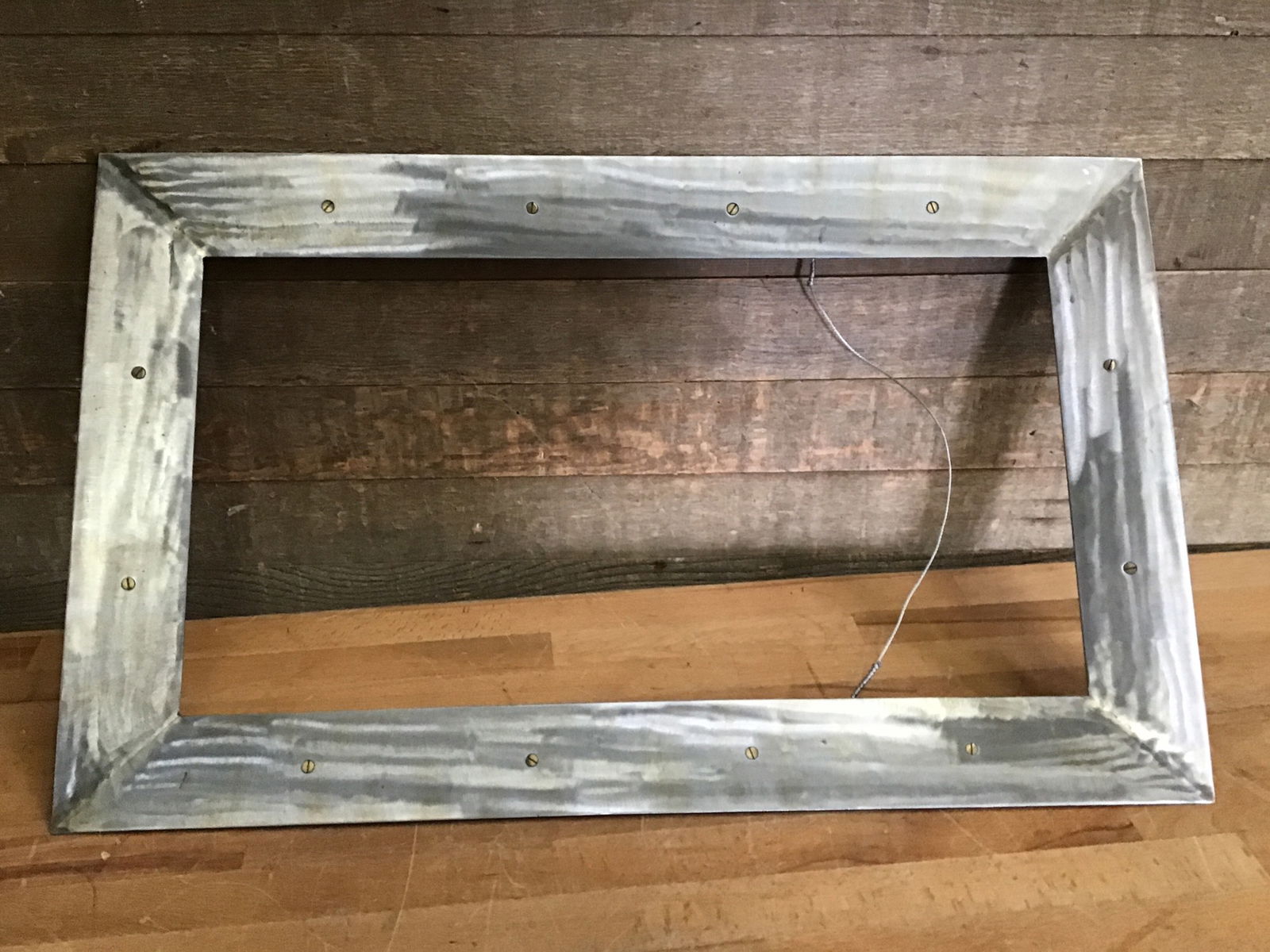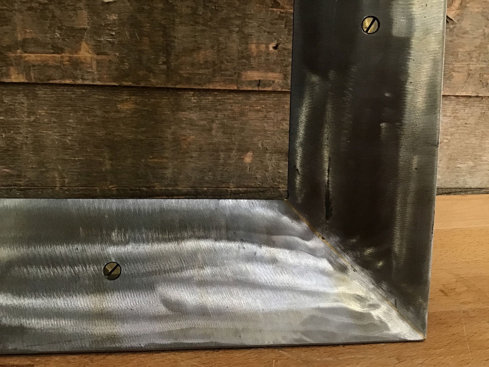 Great looking neo industrial steel picture frame with a brushed finish and nice oxidation streaks. Inlayed with bronze flush mounted screws as accents.