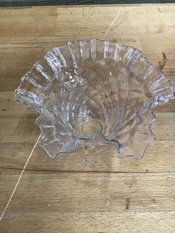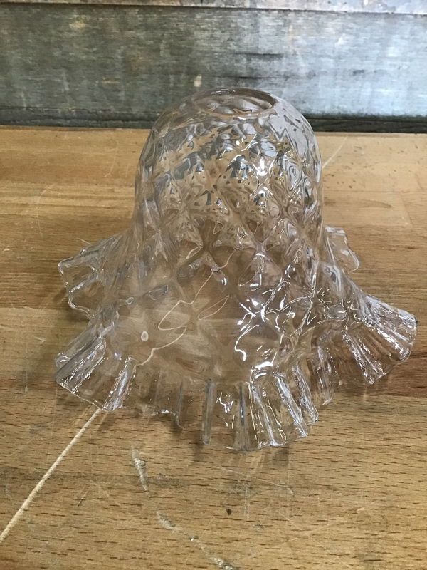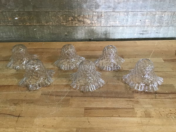 Set of 6 stunning clear glass shades. They are in excellent condition, with a beautiful peticoat ruffle around the edge. They have a 1" diameter opening.