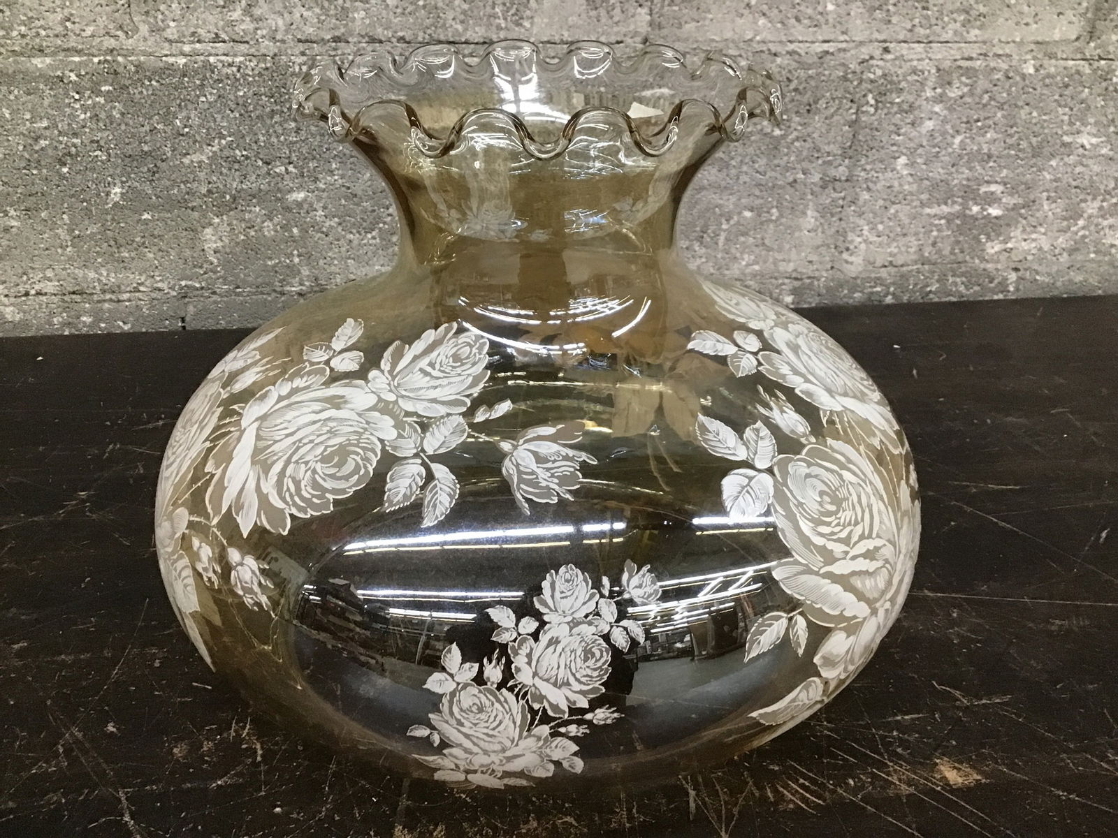 Very pretty parlor lamp shade with a floral pattern. Fits a 9.5" fitter