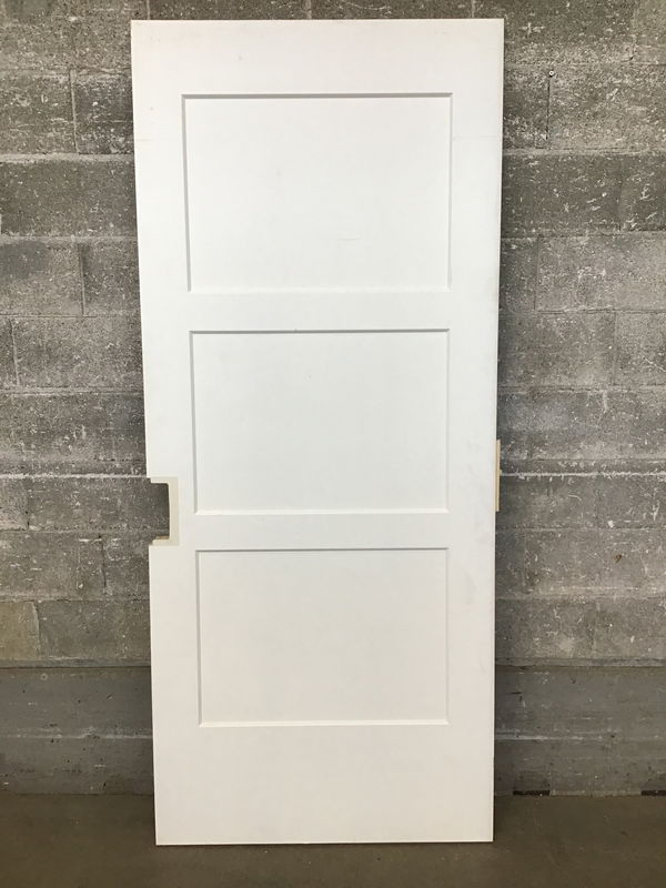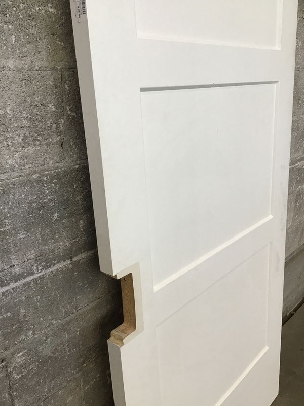 Never installed solid core pocket door with three faux panels. A little overheight and exterior thickness.