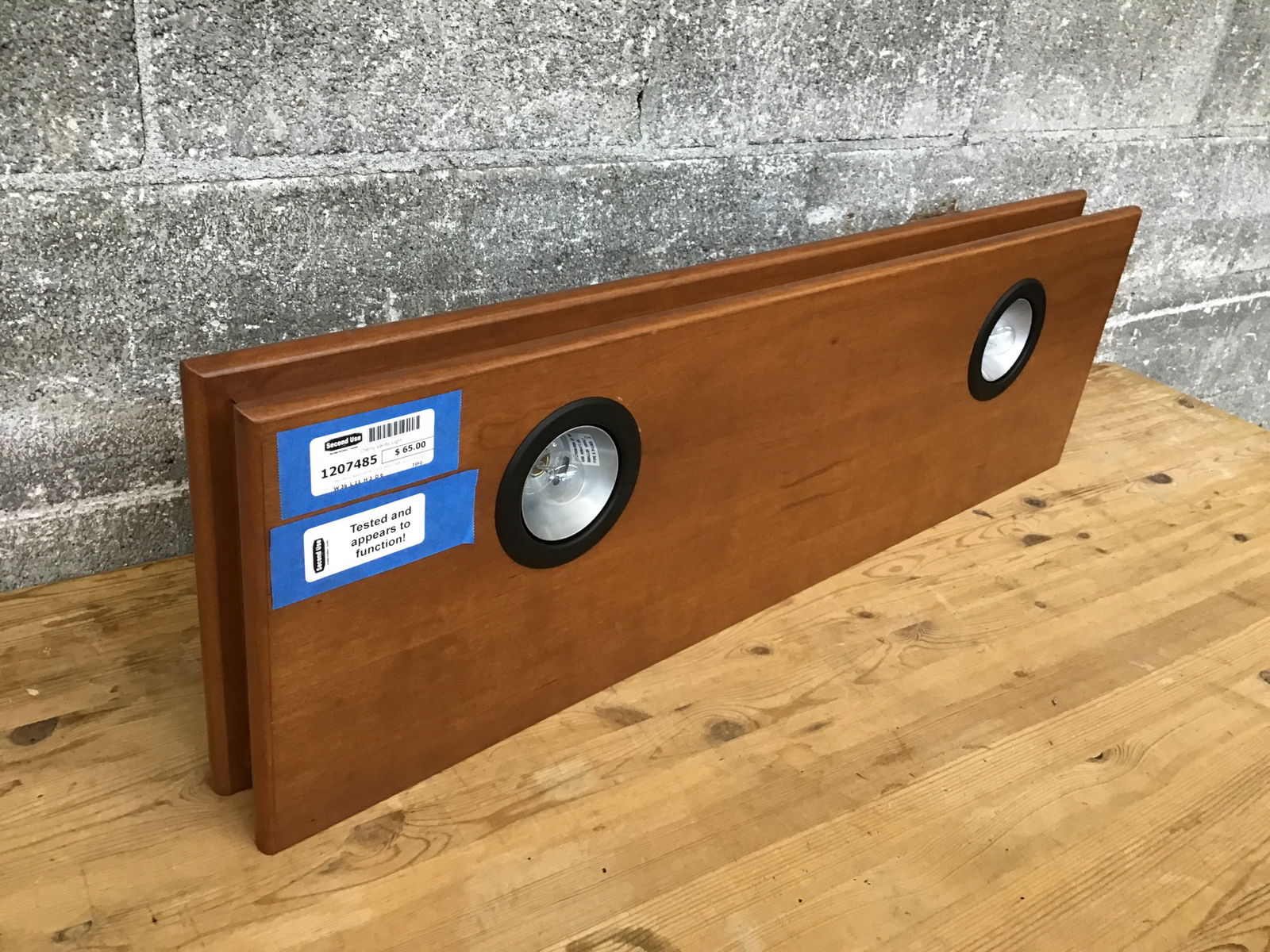 This cherry wood vanity could really class up a living room display case. Or imagine it mounted on the wall above a bed, perfect for the avid late-night reader! It has two plug-in intermediate-base light sockets. Suitable for dry locations only.