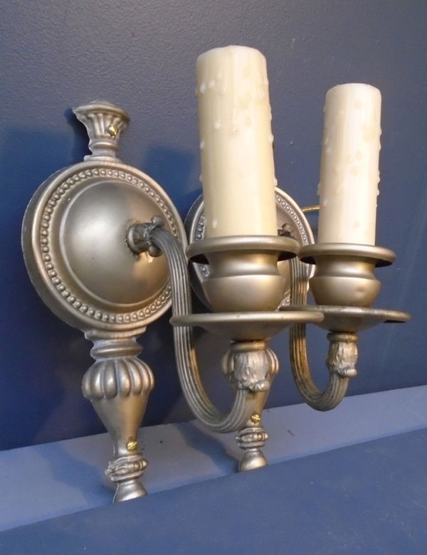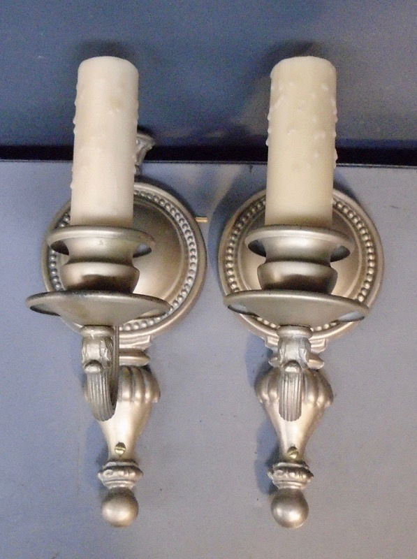 A pair of Neoclassical style wall sconces marked "Pat Oct 21 1916. These are in good shape for their age! Rewired in-house. Photo may be representational