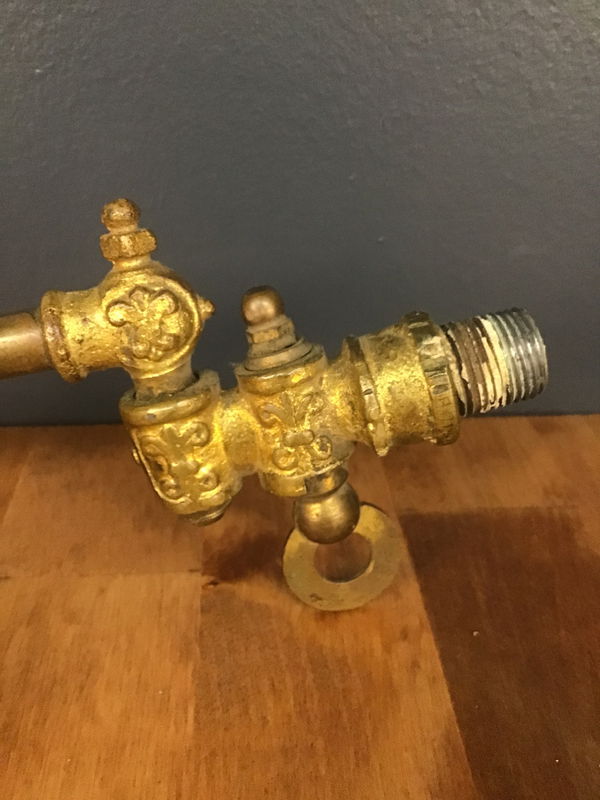 A brass gas wall light arm with valve and 4 inch shade holder. Gorgeous Victorian details! Sold as parts