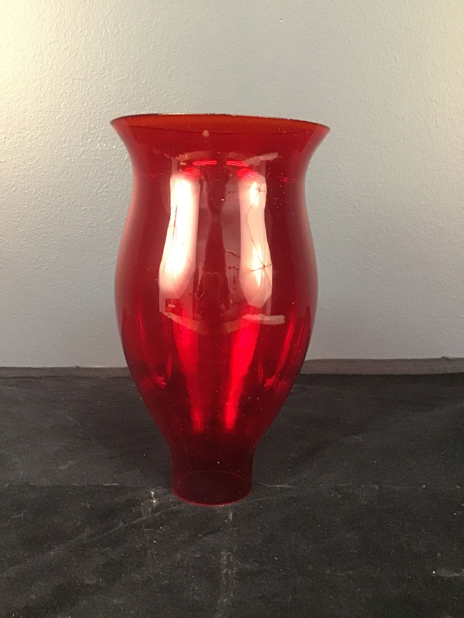 An antique hurricane lamp shade in a gorgeous ruby red color!