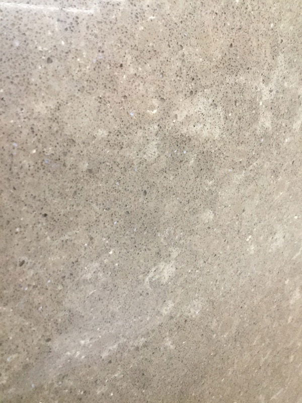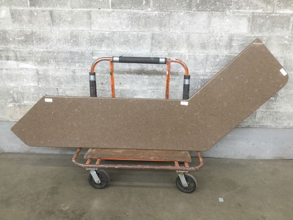 Sizable section of brown ?quartzite? countertop with three finished sides. This looks like an excellent candidate for a bar top. Length given is to the unfinished angled cut.