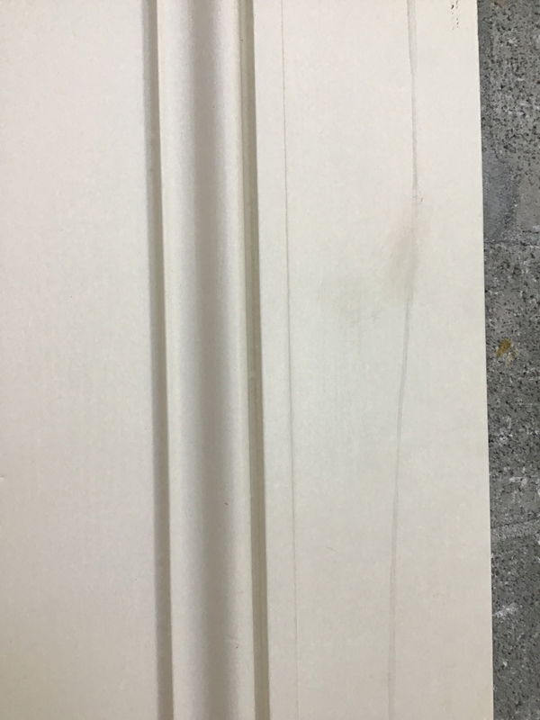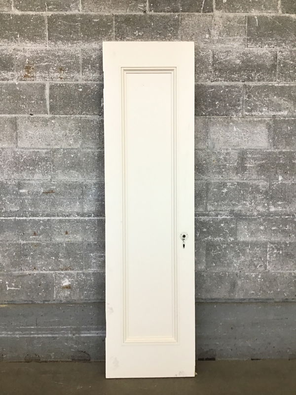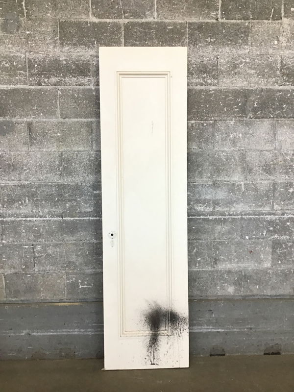Allegedly salvaged from a 1913 mansion, this door has some cool panel trim and the thickness of an exterior door but was assuredly used inside, most likely for a pantry or a closet. There is a splatter of black paint on one side at the bottom, this would have needed new paint regardless.