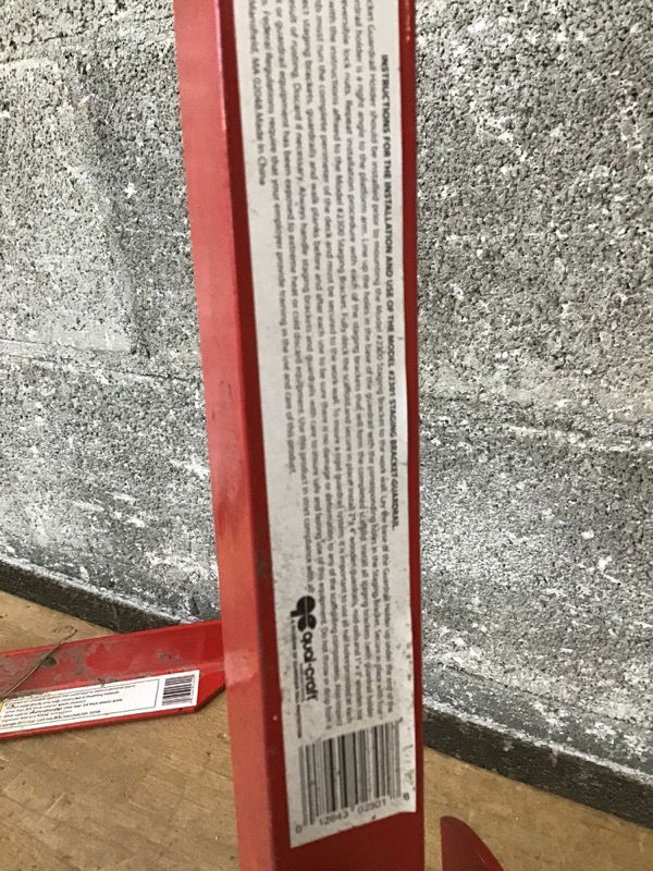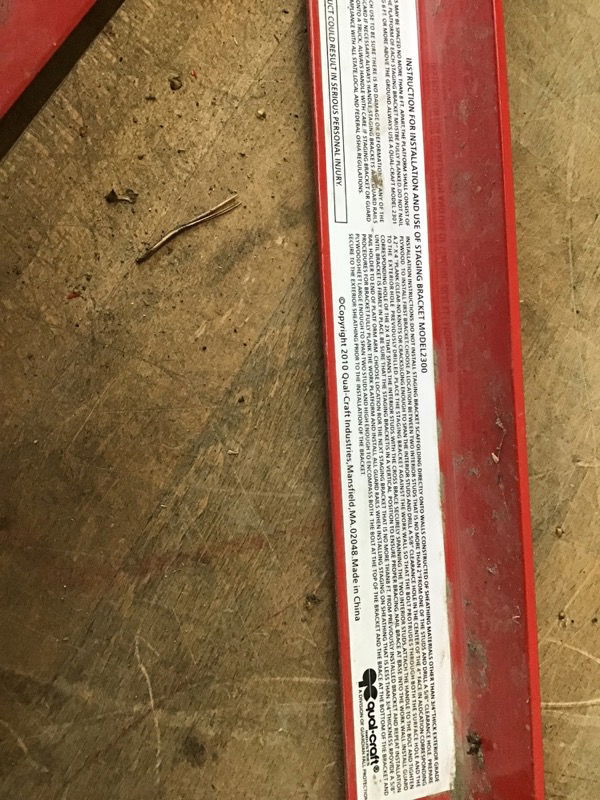 A Model 2300 Staging Bracket and a complimentary Model 2301 Guard Rail from QualCraft. Meant for creating temporary platform on a wall. Bracket retails for $45, and the guard rail for $40