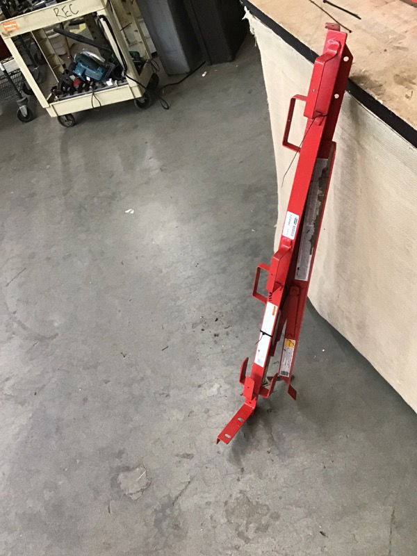 A Model 2300 Staging Bracket and a complimentary Model 2301 Guard Rail from QualCraft. Meant for creating temporary platform on a wall. Bracket retails for $45, and the guard rail for $40