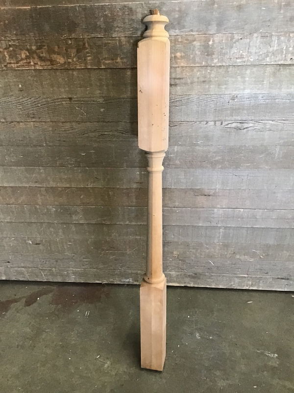 Hem/fir newell post. May have minor cosmetic damage or cracks.