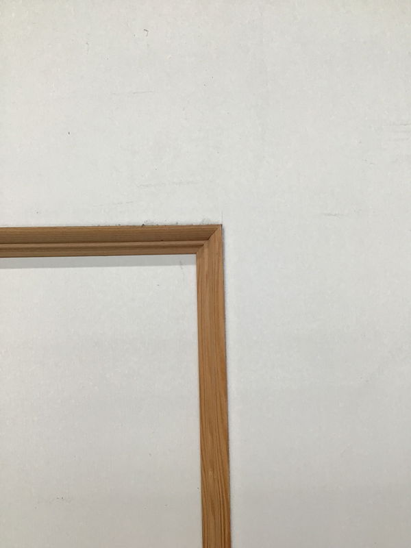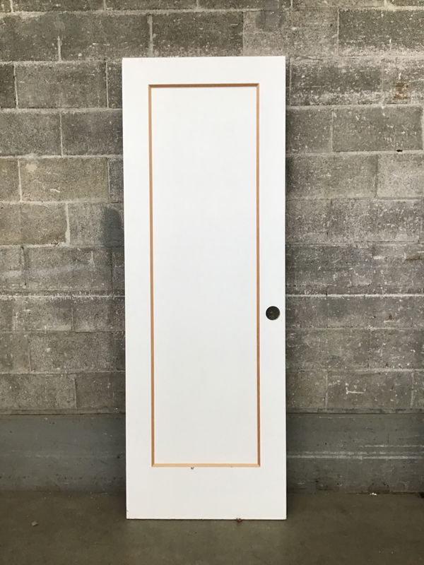 Newer single panel interior door with a crisp white paint job and a cool raw wood ogee. Pre-bored for mortise and modern knobset.