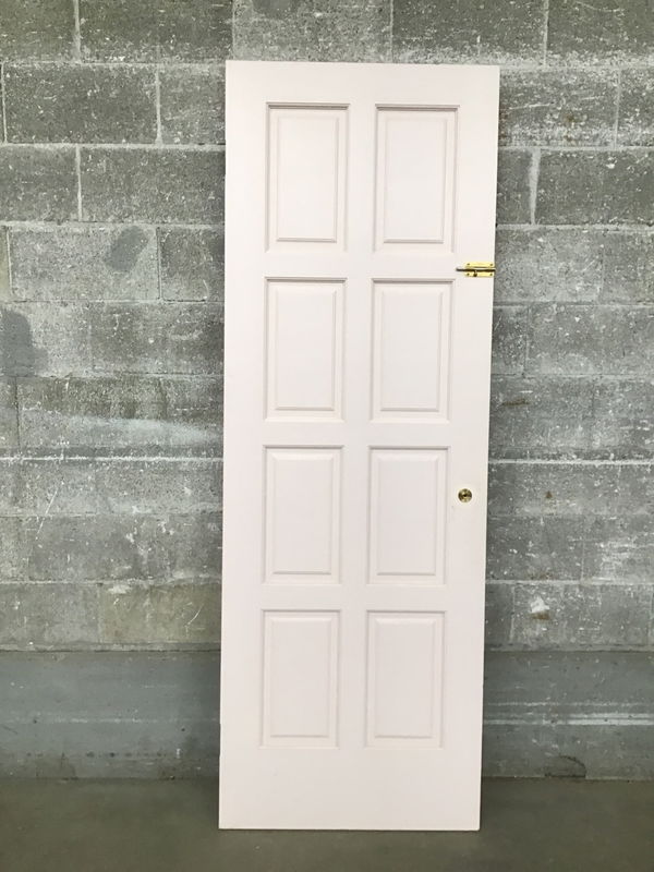 Cleanly painted raised eight panel interior door that was used as a right hand pull.