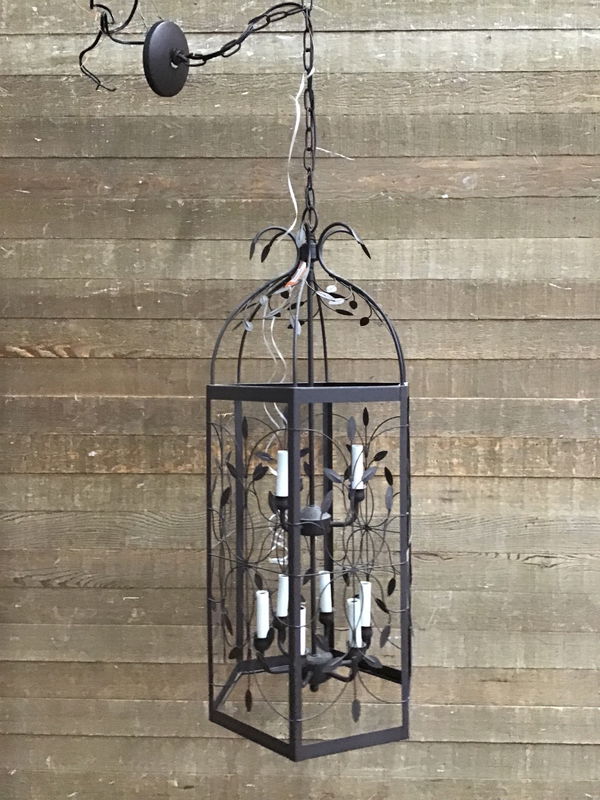 Super cute birdcage chandelier with a bronze finish. This chandelier takes 9 small bulbs, and comes with about 2' of chain. Wiring looks to be in great condition, though we recommend a full test before installation.