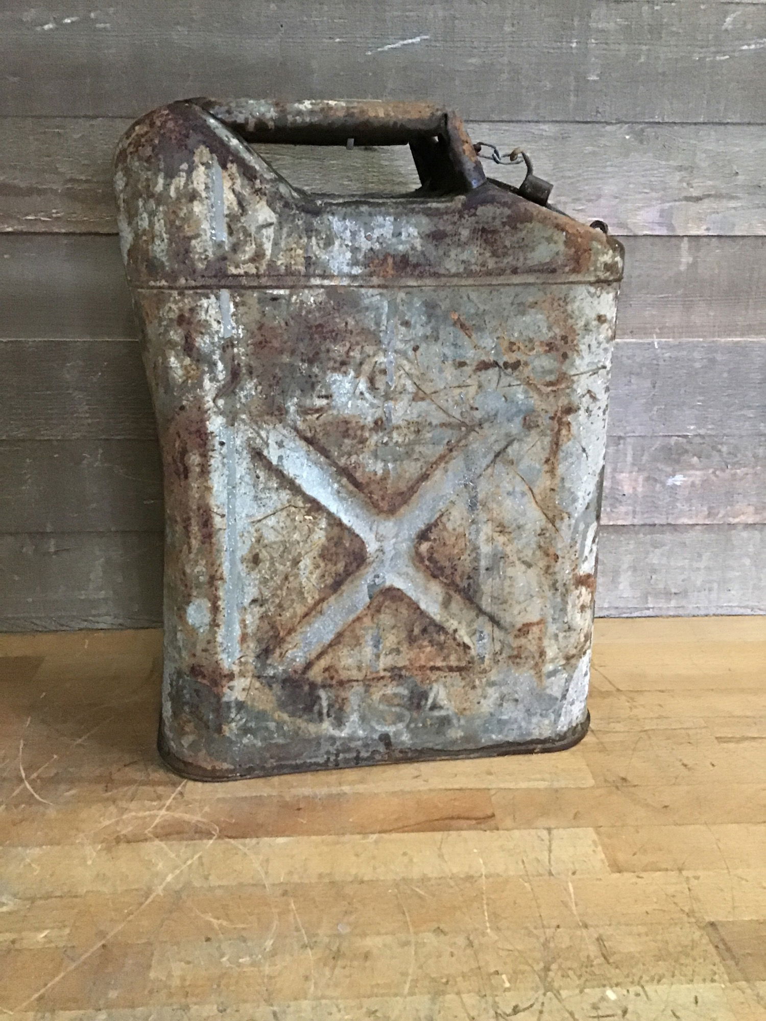 Up for sale is this Antique 44 Monarch WWII US Army Jeep Green Metal Jerry Can. With plenty of field patina and character, this Can could be restored for its original use, or repurposed as functional decor!