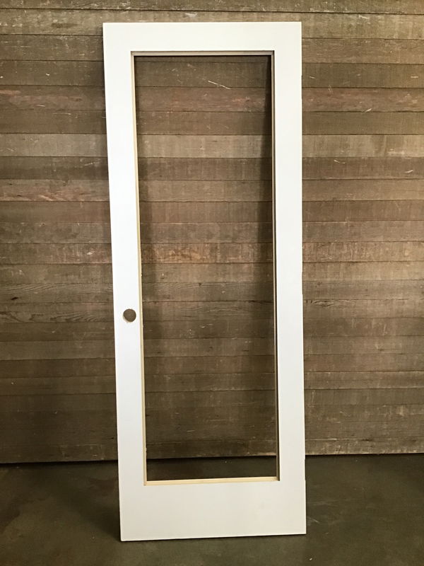 Primed masonite interior single panel door without the panel. Frame is in decent shape just needs a new panel!