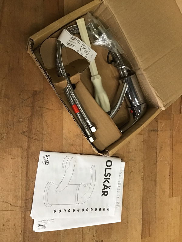 Ikea "Olskar" single hole faucet with a chrome finish. This came to us new in box.