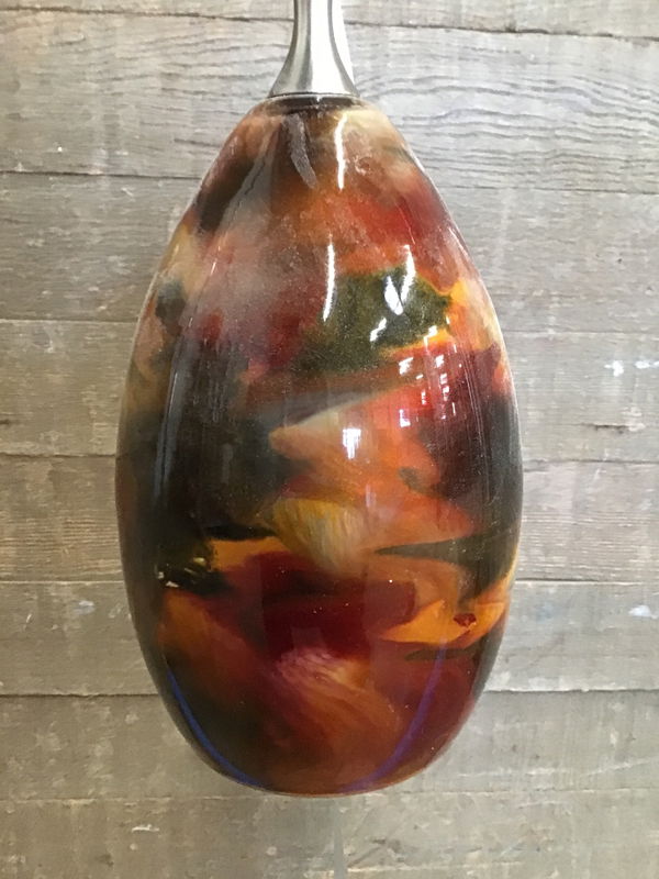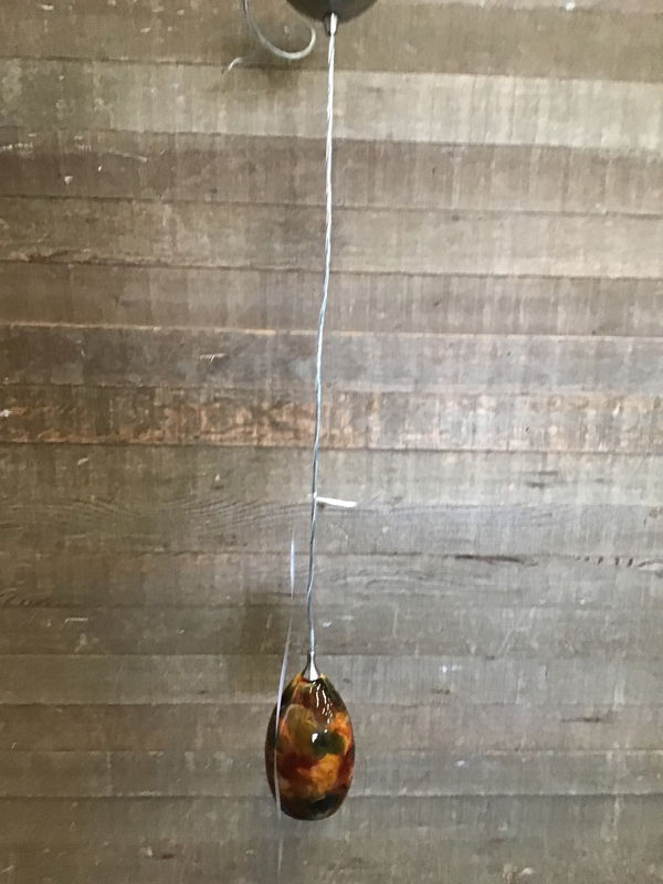 Small pendant with colorful blown glass shade. Takes a regular medium base bulb.