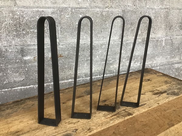 Set of four. Locally crafted by a family operation. Made from bent and welded 1.5" steel bar. These come as primered steel that can be used as-is or spray painted what ever shade of awesome you choose. Perfect for your DIY coffee table project.