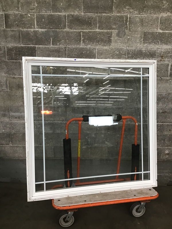 Ca. 1996 5' x 5' fixed vinyl window with faux Craftsman style grids.
