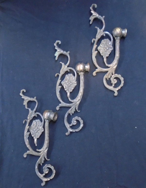 3 gorgeous Art Nouveau style decorative parts from a Victorian gas chandelier. Scrolls and leaves and a pretty Japanned finish! These are just waiting to become a part of your next creative endeavor!