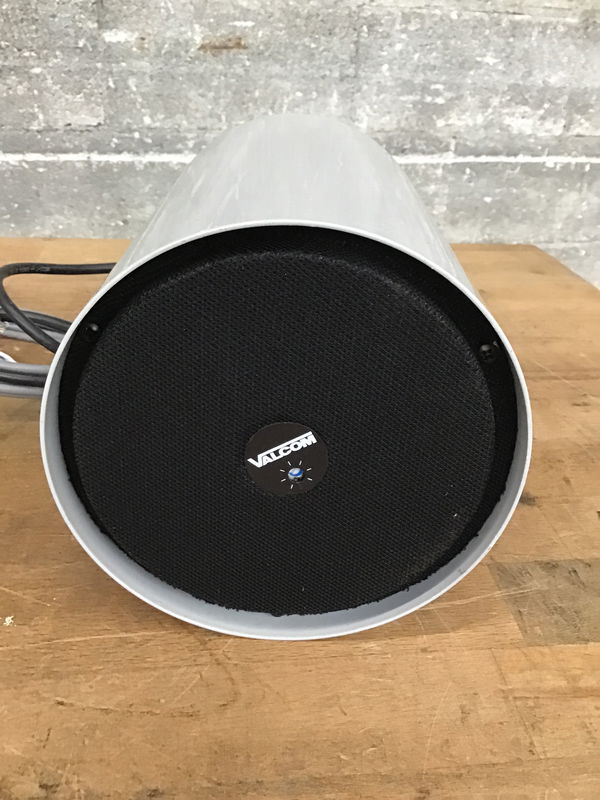 Upgrade your audio setup with this Valcom pendant style speaker! Aluminum construction with powder coated finish, hangs from 6" of chain. Retails new for $140.
