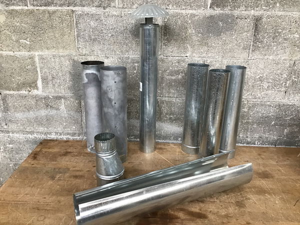 3" galvanized chimney pipe kit with cap and several straight pipe sections, seem like this would be appropriate for a small wood burning setup in a small cabin. Sold as a kit