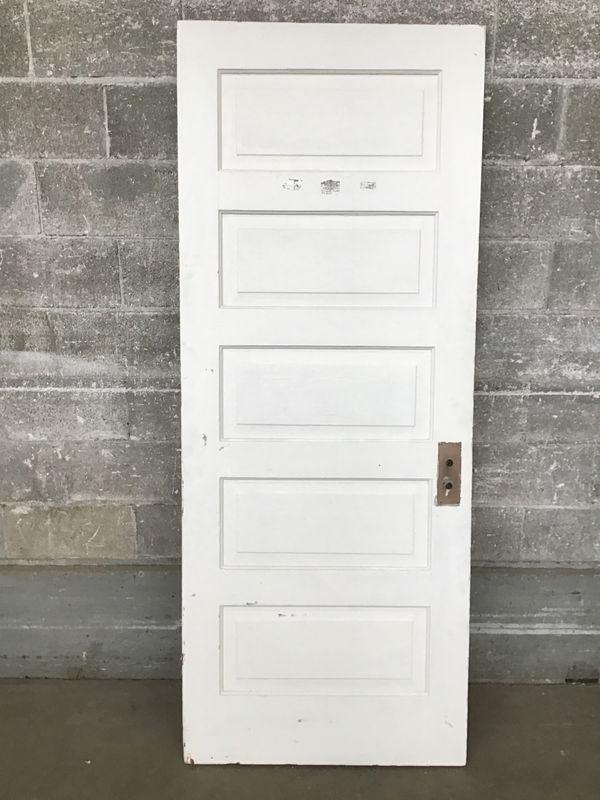 Vintage raised five panel fir interior door with a coat of paint. This one must have been a custom order width wise, since it's proportioned correctly.