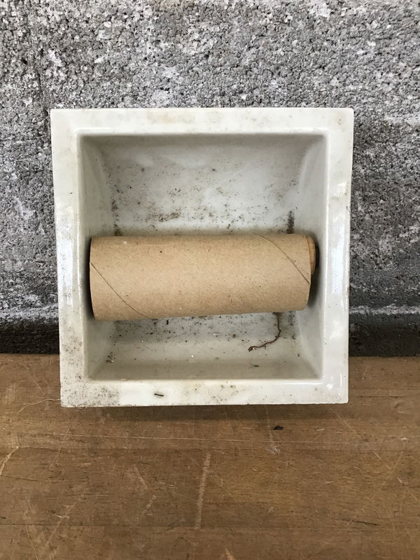 Antique built-in porcelain TP holder in good shape and not tooo mortary.
